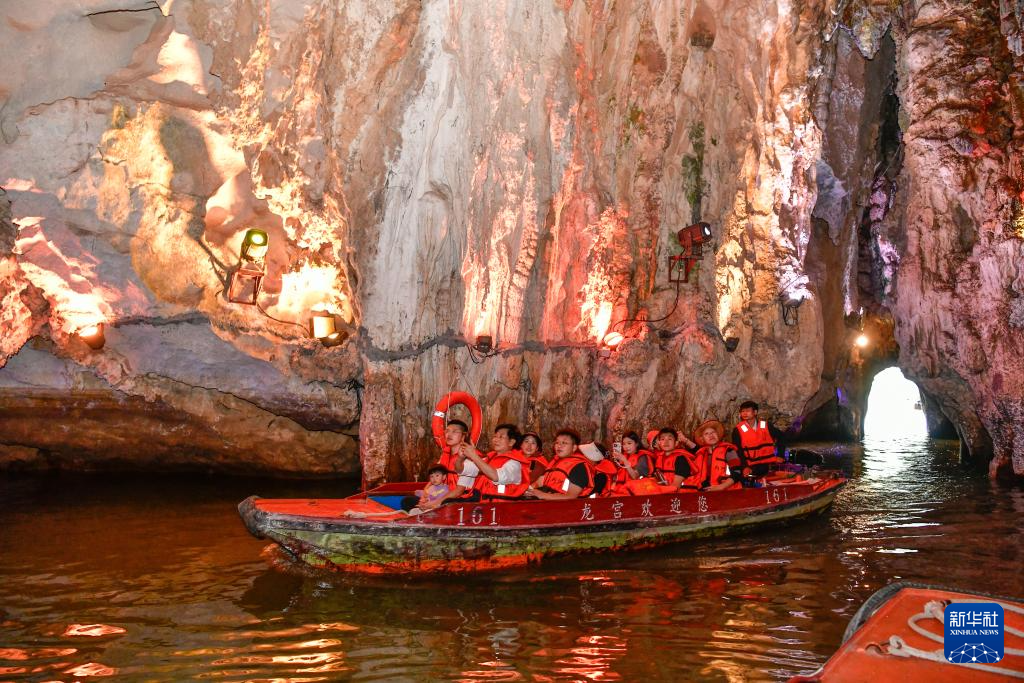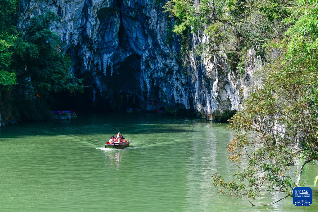 11月14日,游客在贵州省安顺市黄果树旅游区龙宫景区乘船观光。新华社记者 杨文斌 摄