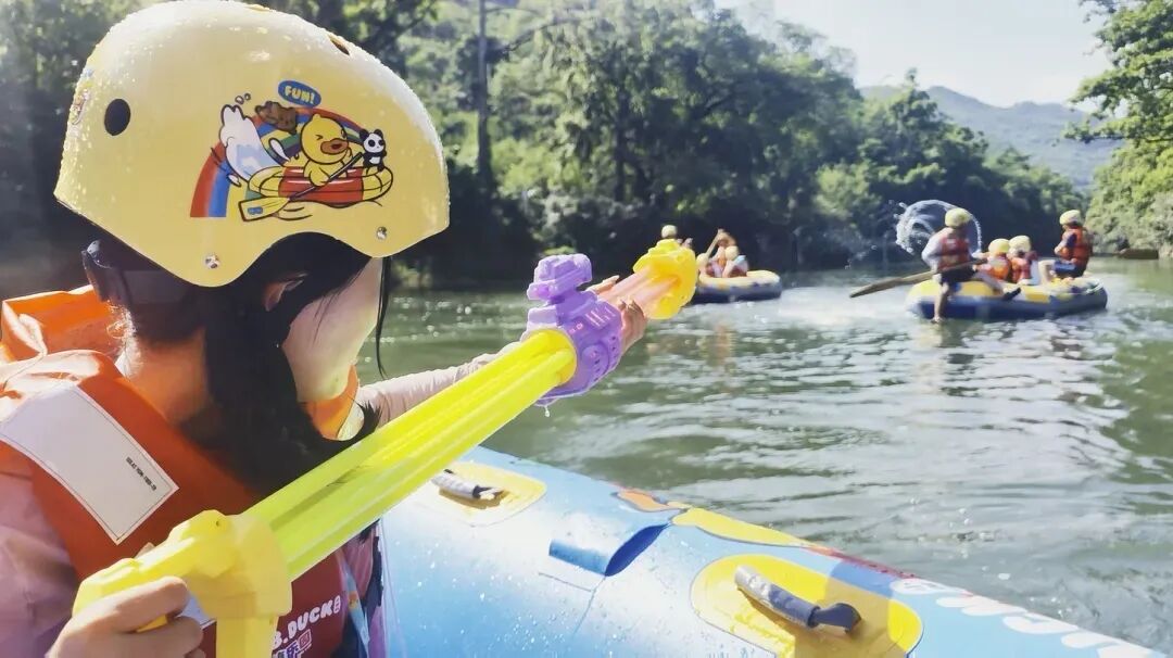 与陡坡塘夜游同样备受青睐的,还有6月试营业的黄果树小黄鸭主题漂流。项目选址于天星桥至郎宫半岛黄金路线,4.2公里的漂流线路串联起12处险滩,以B.Duck小黄鸭为主题全方位植入IP元素,打造出“白天漂流探险、夜晚露营观星、全天沉浸打卡”的全时段体验链。