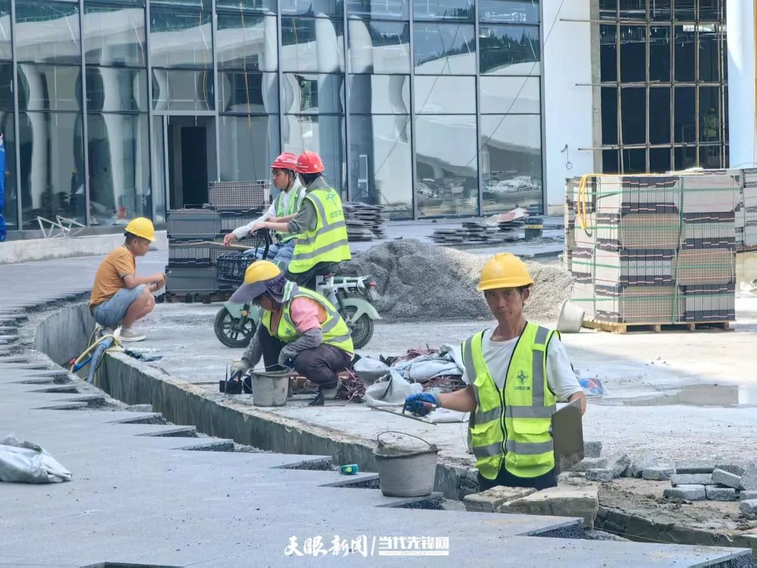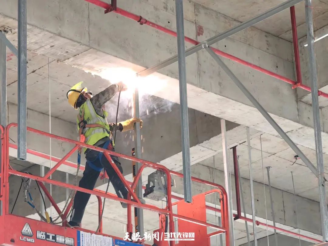 走进施工现场,金属焊接迸溅的火星如流星坠落,升降平台载着工人上下穿梭,约170名工人各司其职。“施工最难的是13米高的售票大厅。”项目现场负责人介绍,设备够不着,就搭起钢铁“云梯”,加班加点赶工期。目前项目主体工程已完工,正紧锣密鼓地开展室内装修、地下室打磨及室外铺装、绿化等附属设施的施工作业。