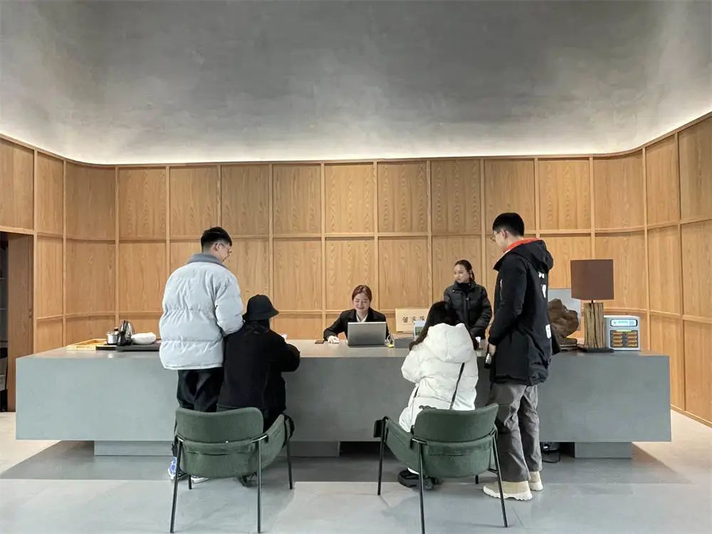黄果树旅游区湿地公园一侧,追求极致简约风的朵贝云舍很酷很潮,步入酒店,水泥灰的主色调搭配空心砖外墙让人眼前一亮,置身房间内的无边泳池,眺望黄果树的绝美山色,加上全屋配备的智能家居,主打年轻定位的轻奢风格,吸引了大批省内外游客来此拍照打卡,在青山环抱间体验诗和远方。