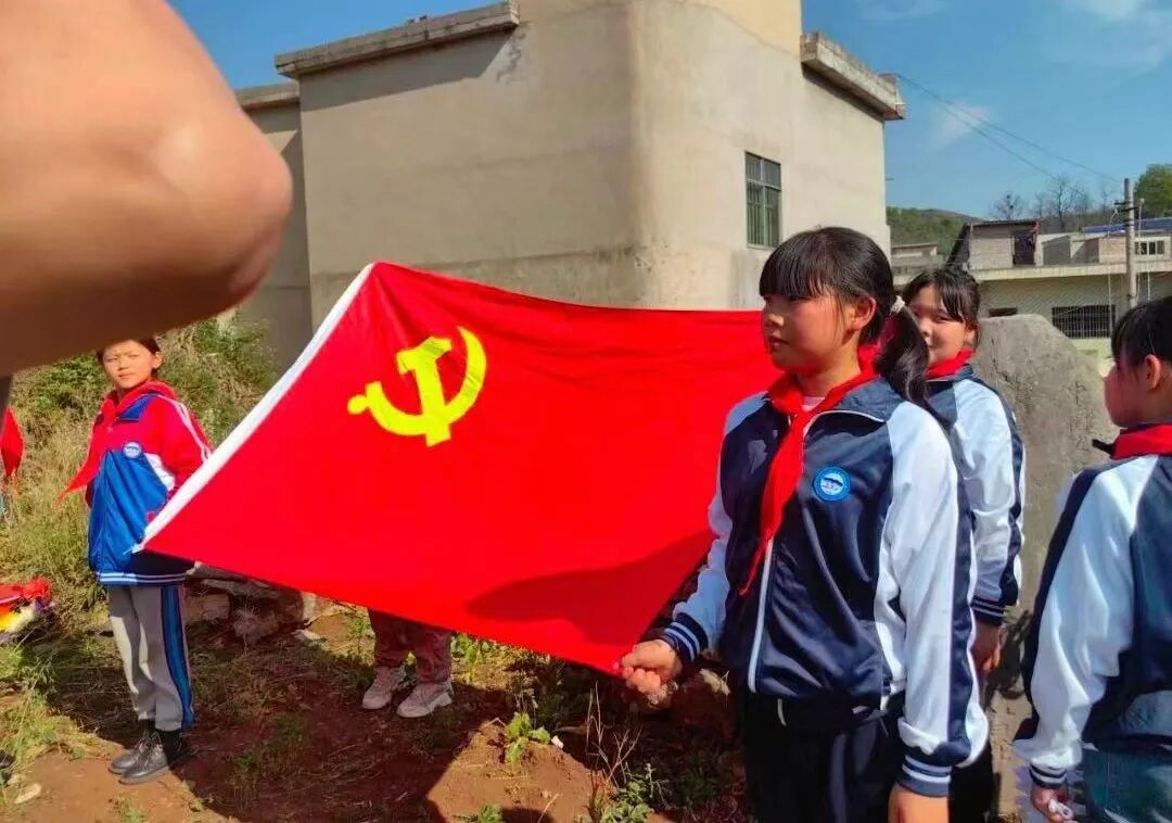 在烈士墓前,大家肃立默哀,向烈士鞠躬,表达无限敬意和绵绵哀思。全体成员齐声唱国歌,队员们高声歌唱《我们是共产主义接班人》,一声声,一句句,大家共同缅怀为国家独立和人民幸福付出生命的先烈们,表达对祖国无限的热爱和对革命烈士的悼念之情。把路村驻村第一书记作了以《铭记蒋海烈士,永铸英雄精神》为题的讲话,希望党员干部、老师们要深刻领会蒋海烈士精神的时代内涵,将其融入到我们的工作和生活中,对党和人民的无限忠诚,发扬不怕困难、不畏牺牲的革命精神,以实际行动践行蒋海烈士的遗志。