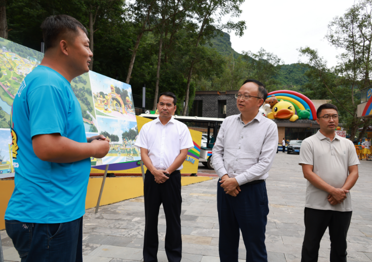 检查组首先来到黄果树 B・Duck 小黄鸭主题漂流乐园,针对涉水安全工作进行重点检查。在漂流乐园现场,董立军查看了漂流设施设备的维护保养情况、救生人员配备及应急物资储备情况,听取了乐园关于游客安全引导、突发情况处置流程的介绍。他指出,涉水旅游项目安全风险较高,要进一步完善安全防护措施,加强对工作人员的安全培训,严格落实游客安全告知义务,确保每一位参与漂流的游客都能在安全的前提下享受游玩乐趣。