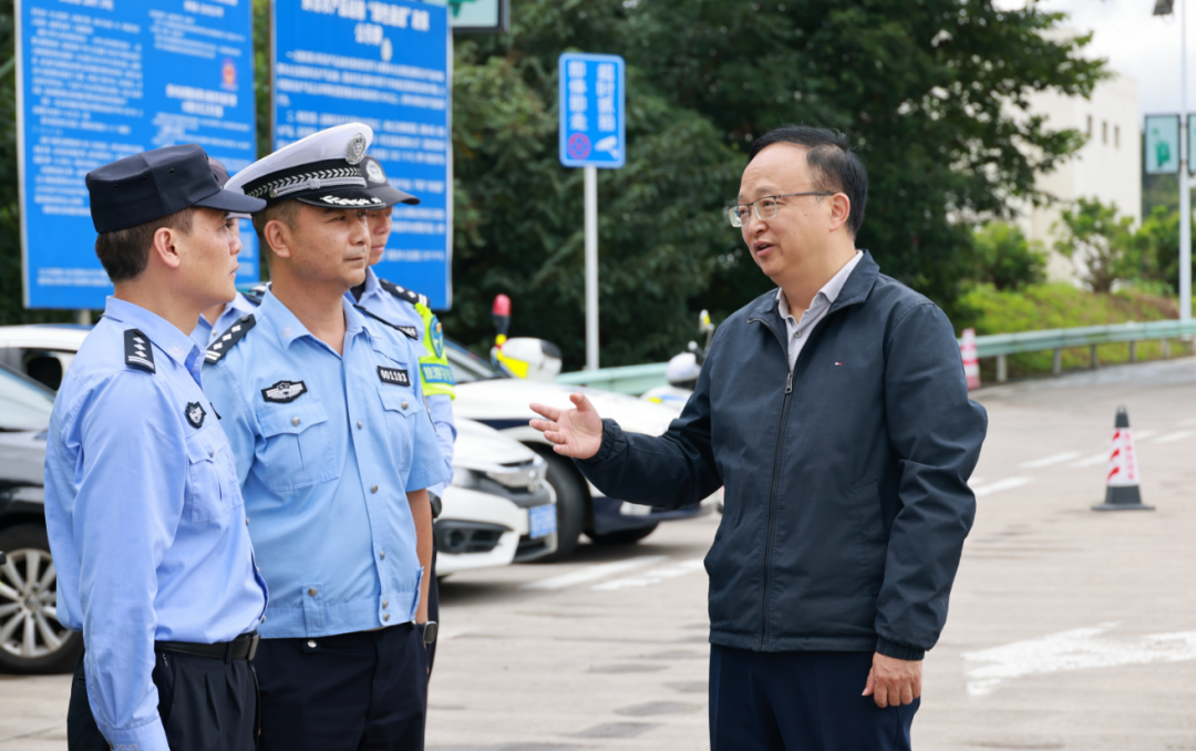 董立军先后来到新城票务中心、黔中路口执法大队岗亭、消防救援大队及高速路口执法岗亭,与一线工作人员亲切交流,详细了解值班安排、安全防控及服务保障情况。他表示,国庆假期是群众休闲出游的高峰期,保障社会秩序和游客体验责任重大,感谢一线服务保障人员的辛苦奉献,鼓励大家持续发扬努力拼搏、艰苦奋斗的精神。