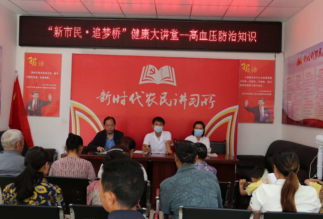 在健康大讲堂知识讲座上,黄果树镇卫生院负责人杜维维医生详细介绍了高血压的定义及分级分类标准、主要危害、发生原因与筛查方法,并就如何降压以及降压药物治疗应注意的事项做了讲解。他叮嘱小区中老年人要从自我做起,做自己的保健医生,培养健康的生活方式,保持身心健康。