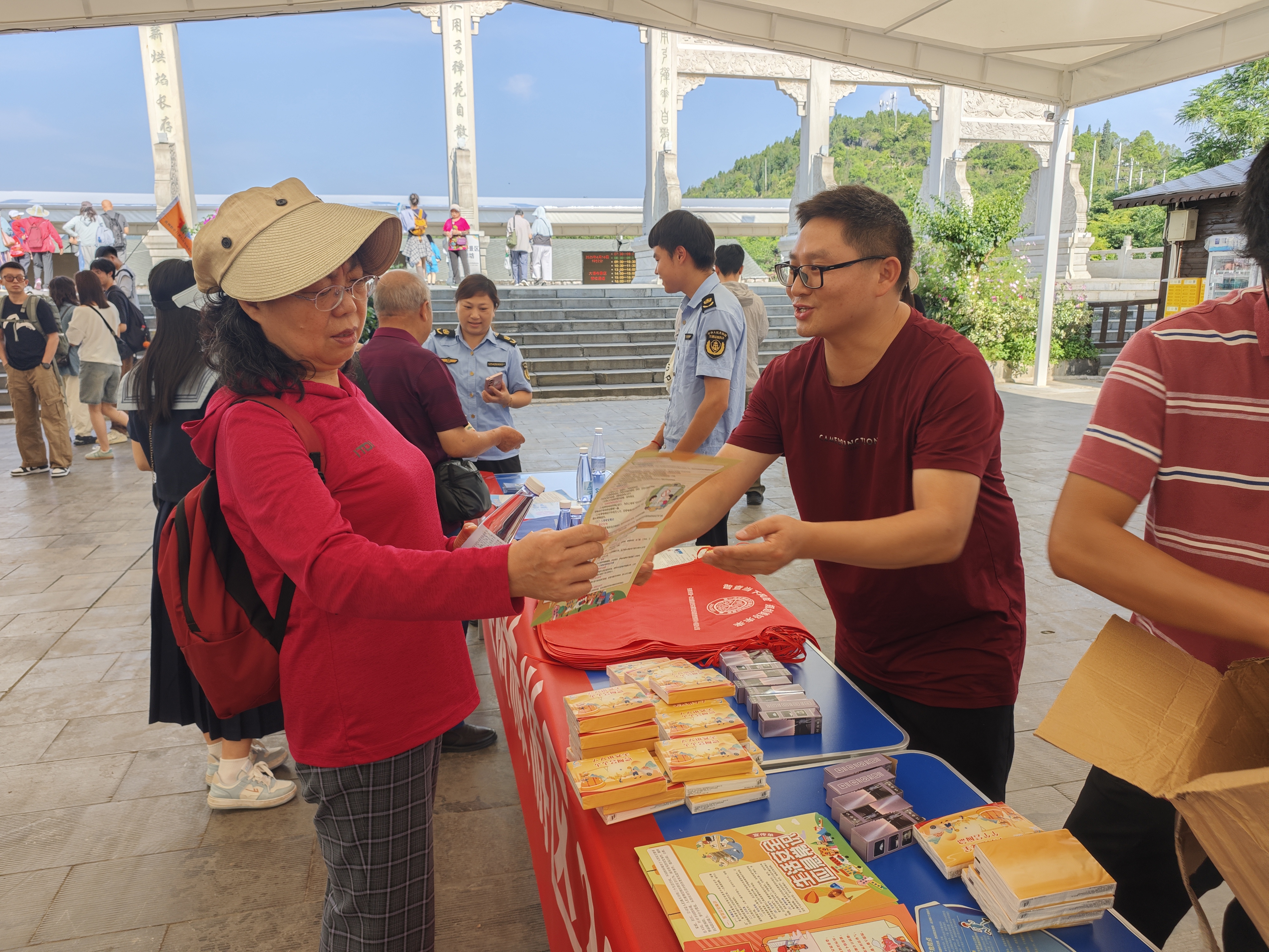 活动现场还设立了安全宣传咨询台,由各部门业务骨干组成的宣传队伍,为游客和群众提供精准咨询服务。工作人员主动向周边游客宣传法律法规和安全常识,教育引导游客和群众增强安全防范意识和自救互救能力。同时,送上纸巾、水杯等精美的小礼品,吸引更多游客和群众参与到安全宣传咨询中来,营造出了良好的宣传氛围。
